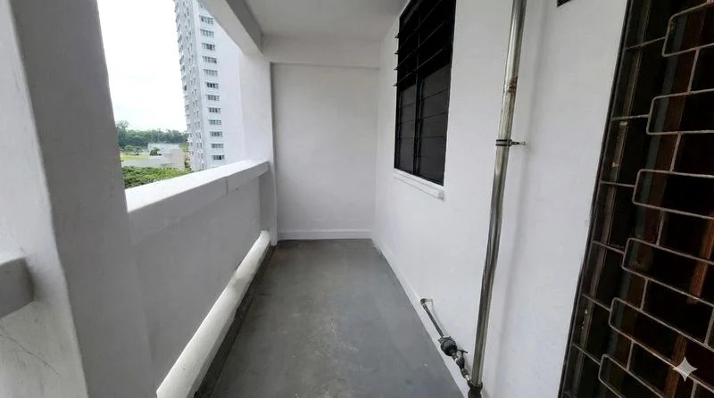 Step into a bright and airy sanctuary at 124 Lor 1 Toa Payoh, where abundant natural light floods the space, highlighting the classic parquet flooring in the bedrooms and the inviting ambiance. The long balcony offers a serene view of lush greenery and surrounding residential buildings, creating a peaceful retreat right at home.