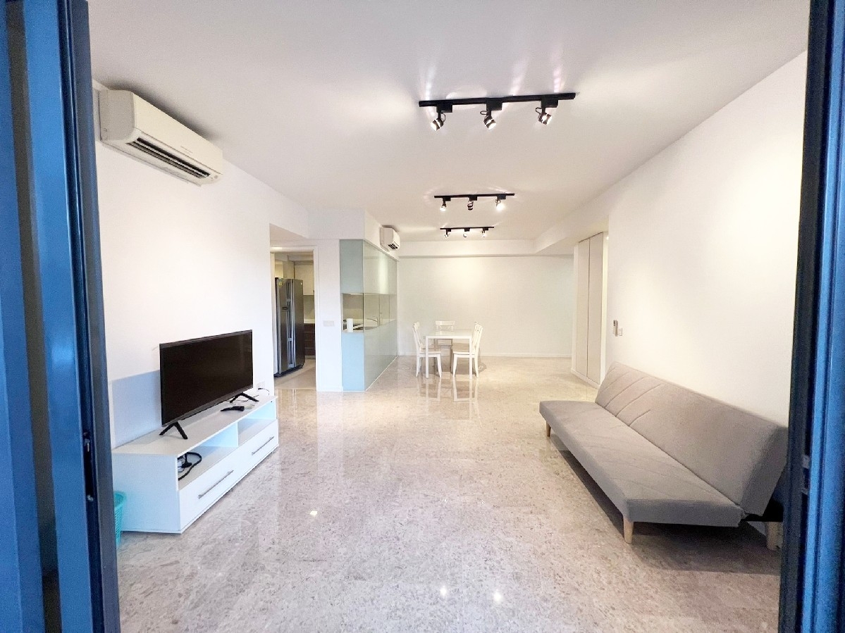 This well-maintained unit features three spacious bedrooms, each equipped with split-unit air conditioning for optimal comfort. The semi-open kitchen, adorned with white countertops and a glass partition, seamlessly integrates with the dining area, making it perfect for entertaining. Enjoy direct access to the large balcony from the master bedroom, where you can unwind while soaking in the tranquil views.