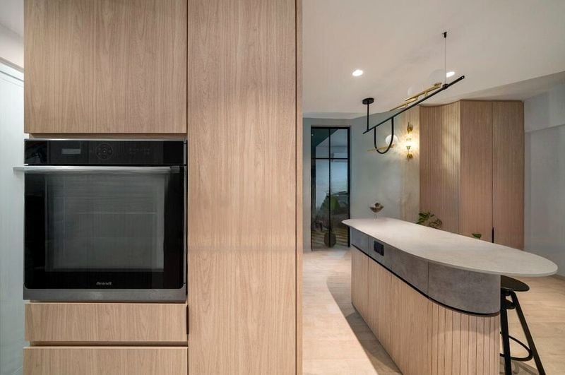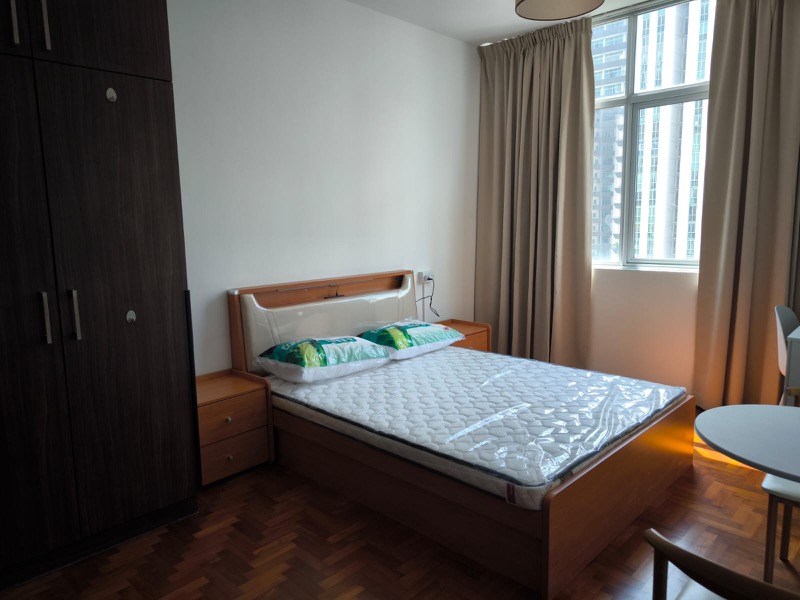 This well-maintained unit features a thoughtfully designed layout, including a spacious bedroom with built-in floor-to-ceiling wardrobes and a study desk, perfect for work-from-home arrangements. The kitchen boasts sleek black countertops and a gas hob, while the dining area is adorned with a chandelier that adds a touch of sophistication. The bathroom offers a split vanity for added convenience, and the balcony provides an unobstructed view that is simply mesmerizing.