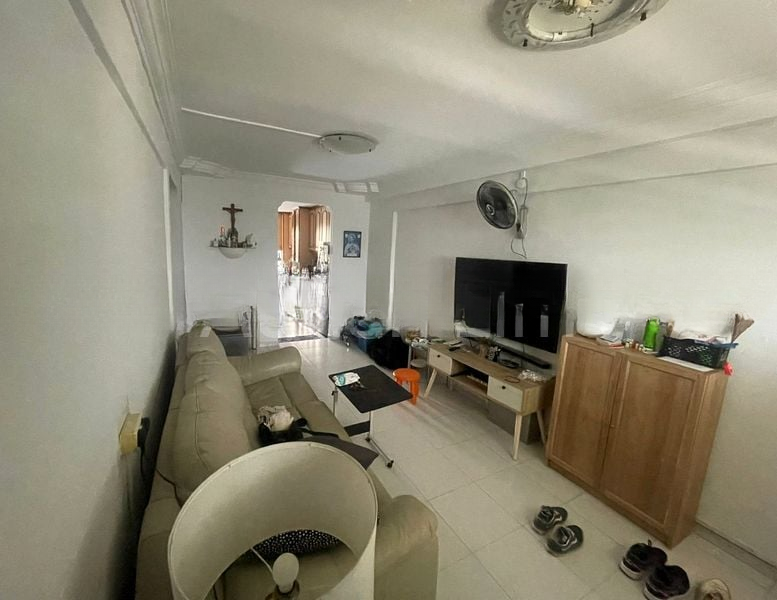 Step into this well-maintained 2-bedroom HDB flat and be greeted by an inviting ambiance, where moderate natural light dances across the tiled flooring. The unblocked views of the city skyline and lush greenery create a serene backdrop, making every moment spent here feel tranquil and refreshing.