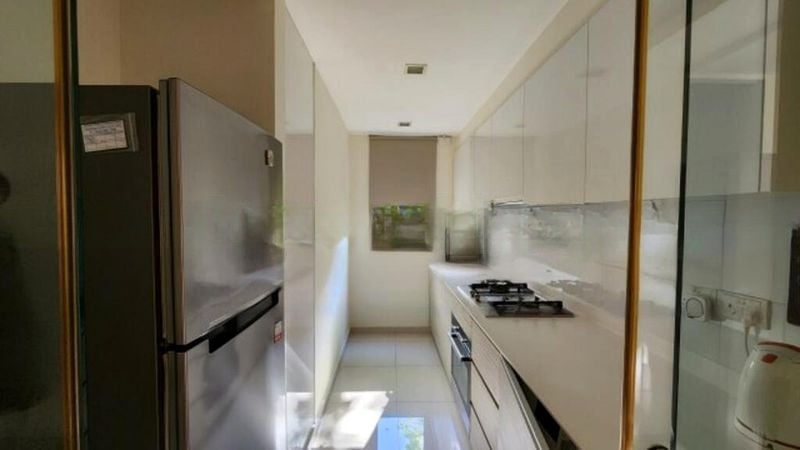 This thoughtfully designed unit features a galley kitchen equipped with white cabinetry, a gas hob, and an integrated oven, perfect for culinary enthusiasts. The living room boasts a long layout, fully furnished for your convenience, while the bedrooms come with built-in wardrobes and a storage bed, maximizing space without compromising style. The bathrooms are fitted with modern fixtures, including a glass shower enclosure and a wall-hung toilet, ensuring a touch of luxury in your daily routine.