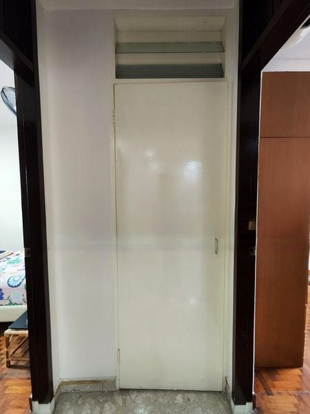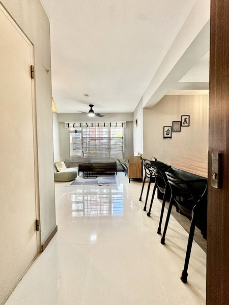 Step into a world of potential with this spacious HDB flat that greets you with a functional layout and classic crown molding. The living area is bathed in moderate natural light, creating an inviting ambiance for relaxation or entertaining. The large built-in wardrobe in the bedroom offers ample storage, while the tiled flooring throughout adds a touch of practicality.