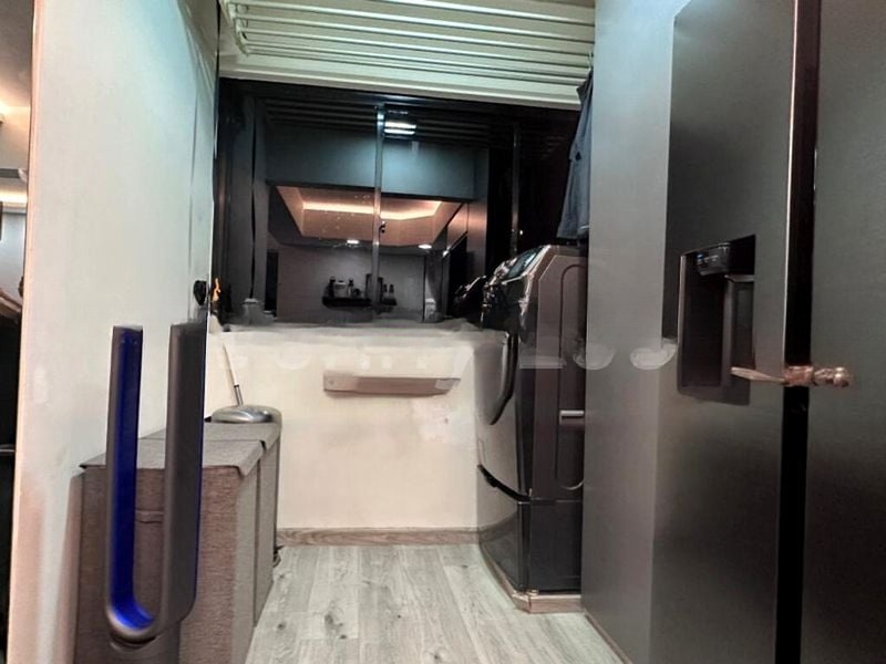 Step into this beautifully renovated HDB flat and be greeted by an ambiance of modern elegance. The sleek black marble-look wall tiles and gold-toned bathroom fixtures create a striking visual impact, while cove lighting enhances the overall sophistication. Although natural light is limited, the carefully chosen finishes and design elements ensure a warm and inviting atmosphere throughout.