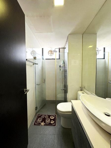 Step into this inviting unit at Simei Green Condominium, where a warm ambiance greets you with its cozy interiors and stylish modern minimalist furniture. The terrazzo-style flooring flows seamlessly throughout, complemented by natural light filtering through large windows, offering an urban view that enhances the living experience.