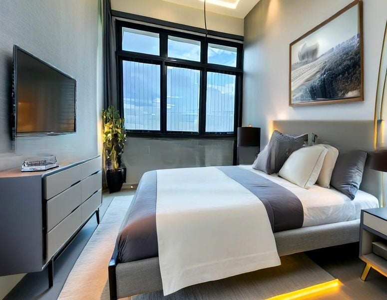 Step into a bright and airy sanctuary where abundant natural light floods through floor-to-ceiling windows, offering uninterrupted views of lush greenery and serene gardens. The designer finishes and modern furnishings create an inviting ambiance that instantly makes you feel at home.