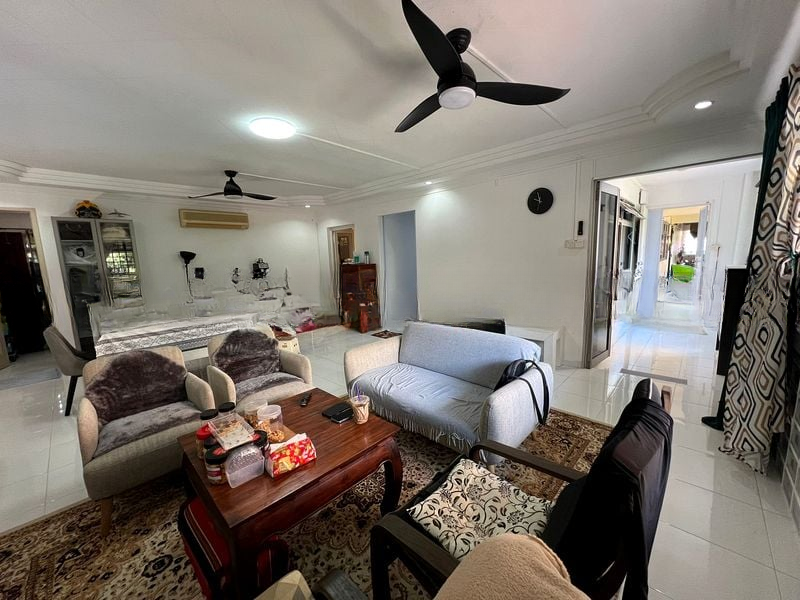 Step into a bright and airy sanctuary where abundant natural light floods the spacious living and dining area, accentuated by decorative ceiling cornices and large windows that frame unblocked views of lush greenery and the surrounding HDB estate. The inviting ambiance sets the perfect backdrop for both relaxation and entertaining.