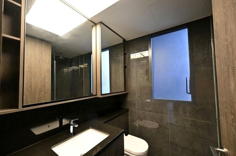 Step into a world of contemporary elegance as you enter this brand-new unit at THE M. Bathed in abundant natural light, the open layout features marble-look floor tiles that seamlessly connect the living area to a private balcony, offering breathtaking views of the urban landscape. The modern minimalist ambiance invites you to unwind in a space that feels both spacious and inviting.