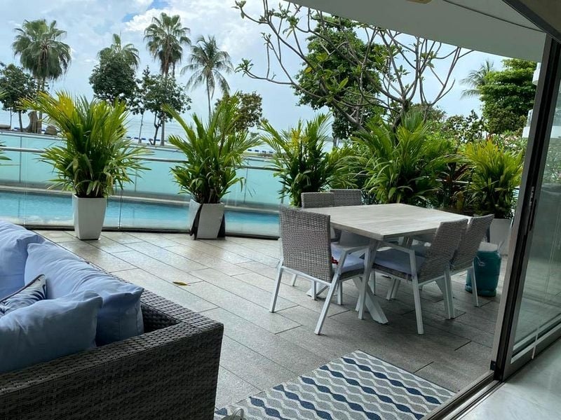Step into a world of elegance as you enter this stunning unit at The Coast at Sentosa Cove. The abundant natural light floods the space, accentuating the bright and airy ambiance. Enjoy panoramic views of lush greenery and the sea from the spacious balcony, complete with a glass railing that invites the outdoors in. The exquisite marble finishes in the bathrooms and the large mirrored vanity cabinets with under-lighting create a sophisticated atmosphere that is both modern and inviting.