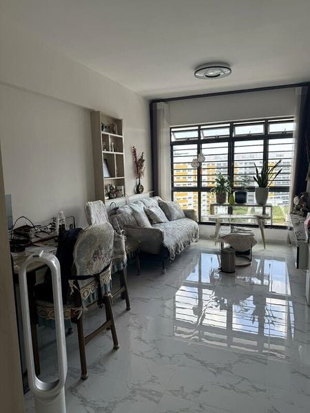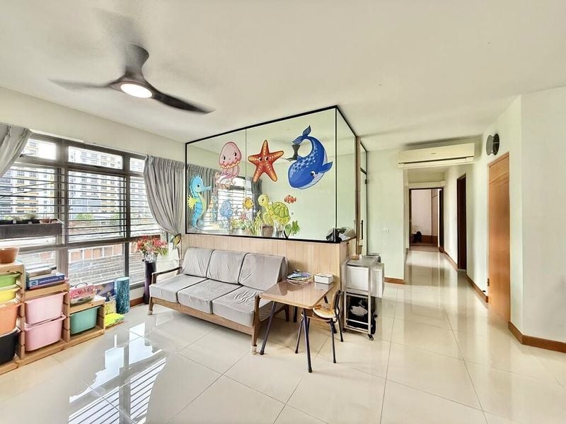This well-maintained 4-bedroom unit boasts standout features, including an integrated study area in the bedroom, a luxurious rain shower in the bathroom, and ample modular storage throughout. The service yard offers a convenient laundry area with an urban view, while the clean white walls and tiled flooring create a fresh and contemporary feel throughout the home.