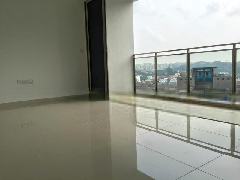 Step into a bright and airy sanctuary at Bartley Residences, where abundant natural light floods through floor-to-ceiling windows, offering stunning views of the pool and city skyline. The polished floor tiles and spacious balcony with glass railing create an inviting atmosphere, perfect for relaxation and entertaining.