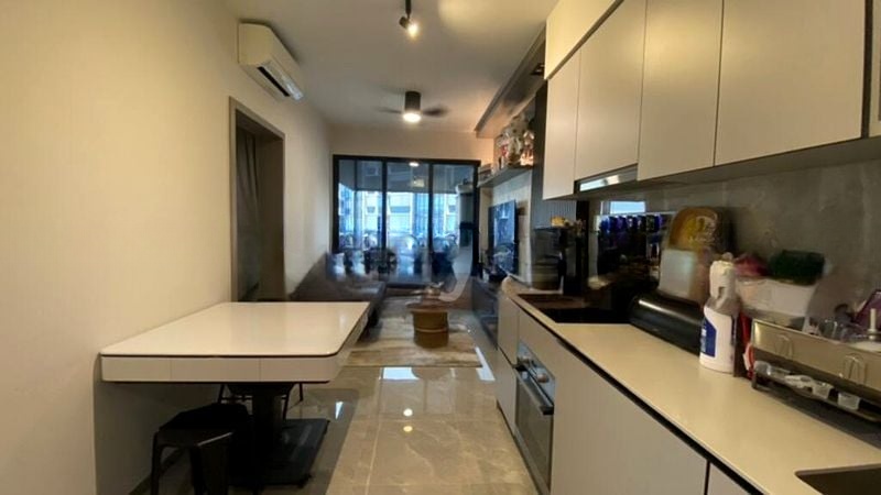 Step into a world of elegance as you enter this beautifully renovated unit at The Garden Residences. The open-concept living area greets you with stunning marble flooring and large floor-to-ceiling windows, flooding the space with warm, natural light. The cozy ambiance is enhanced by designer pendant lighting and decorative feature walls, creating a welcoming atmosphere that feels like home.