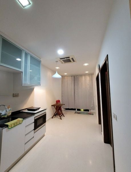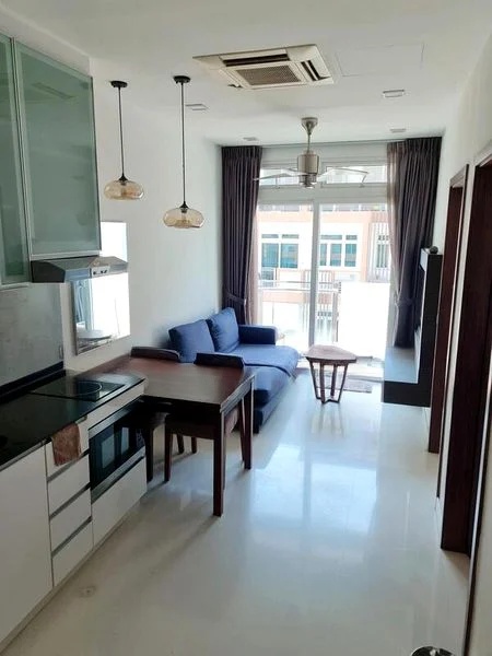 Step into this beautifully maintained 2-bedroom unit at Parc Rosewood, where modern minimalist design meets inviting comfort. The polished tile flooring in the living room reflects natural light, while sliding glass doors open to a balcony adorned with artificial turf, offering a serene view of the swimming pool and neighboring buildings.