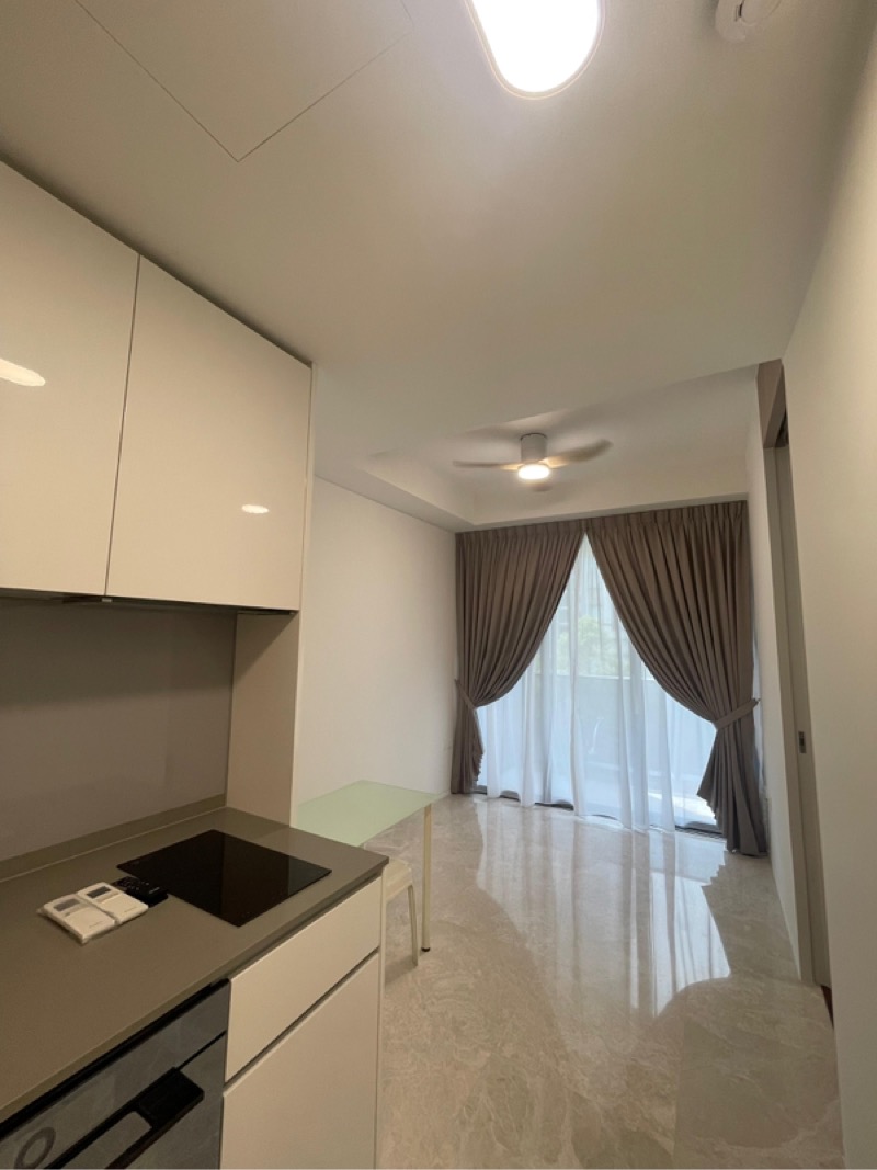 Step into a world of modern elegance as you enter this brand-new unit at Amber Park. The abundant natural light floods through the floor-to-ceiling windows, offering breathtaking views of the sea, pool, and city skyline. The open-concept living area features sleek marble-look floor tiles and a stylish island counter, creating an inviting ambiance that seamlessly blends comfort and sophistication.