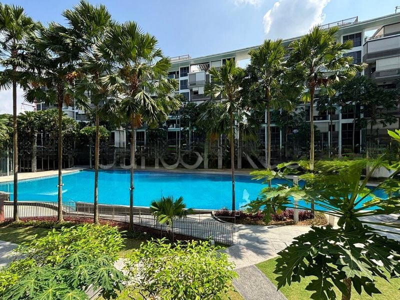 Step into a bright and airy sanctuary at The Inflora, where abundant natural light floods the space, accentuating the elegant finishes and creating a welcoming ambiance. The large sliding glass doors in the living area invite you to enjoy serene views of the swimming pool and lush greenery, while the glass-railed balcony offers a perfect outdoor seating area to unwind.