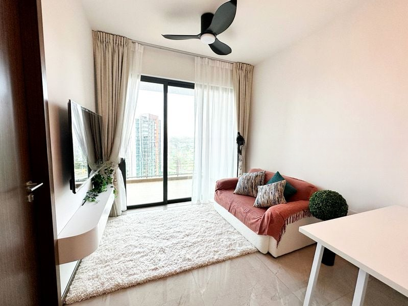 Step into a world of modern elegance as you enter this brand-new 2-bedroom unit at Normanton Park. Bathed in abundant natural light, the airy ambiance is complemented by stunning views of the extensive pool complex and the city skyline. The minimalist finishes create a sophisticated backdrop, inviting you to unwind in this serene space.