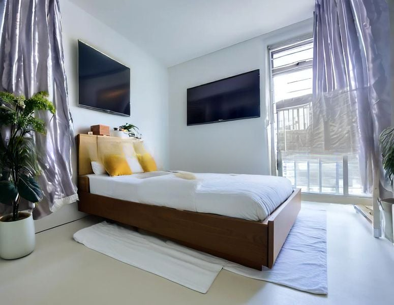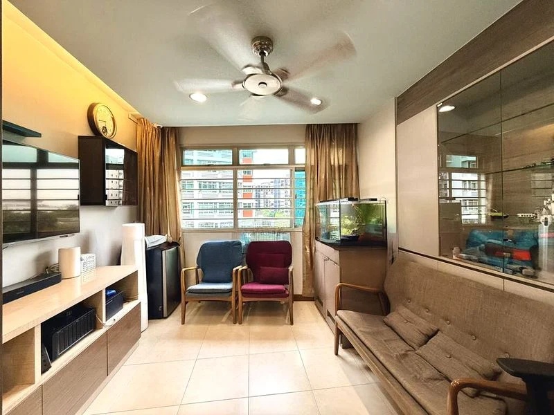 Step into a world of modern elegance as you enter this beautifully renovated 3-bedroom flat at Sengkang Ctrl. The textured dark feature wall in the living room, complemented by a marble-look TV console with ambient blue LED lighting, creates an inviting atmosphere. Natural light filters through, enhancing the stylish decor and bringing warmth to the space.