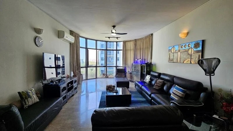 Step into a world of tranquility as you enter this well-maintained 2-bedroom unit at Parc Oasis. Bathed in natural light, the bright and airy ambiance is accentuated by the distinctive curved glass window architecture, offering stunning views of the lush greenery and the expansive free-form swimming pool. The open layout invites a sense of spaciousness, making it an ideal retreat for relaxation.