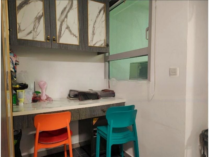 Step into this well-maintained dual-key studio at The Minton, where abundant natural light floods the open concept living space. The large windows offer serene views of lush greenery and low-rise residential buildings, creating a tranquil ambiance that feels both functional and inviting.