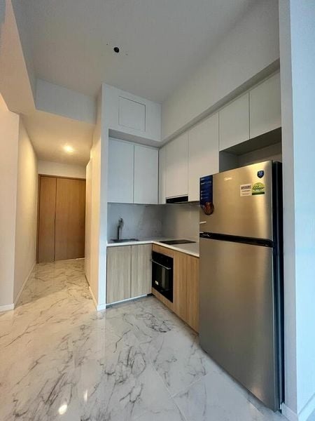 This brand-new, unfurnished unit features a well-appointed kitchenette with a built-in oven and two-tone cabinetry, perfect for culinary enthusiasts. The spacious bedroom boasts timber-look laminate flooring and large black-framed windows, while the luxurious bathroom is equipped with a rain shower and stylish dark stone vanity. Every detail has been thoughtfully designed to enhance your living experience.