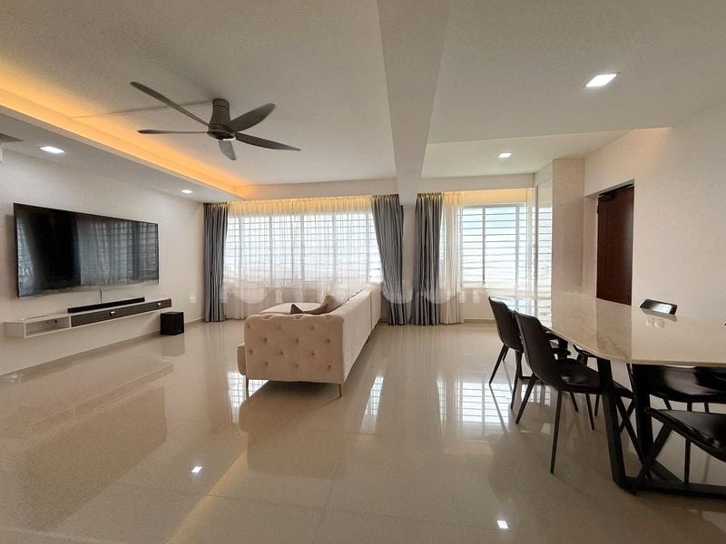 Step into a world of elegance as you enter this beautifully renovated 3-bedroom flat, where abundant natural light floods through large windows, illuminating the stunning marble-look floor tiles. The airy ambiance is enhanced by cove lighting that creates a warm and inviting atmosphere, making it the perfect space for relaxation and entertainment.