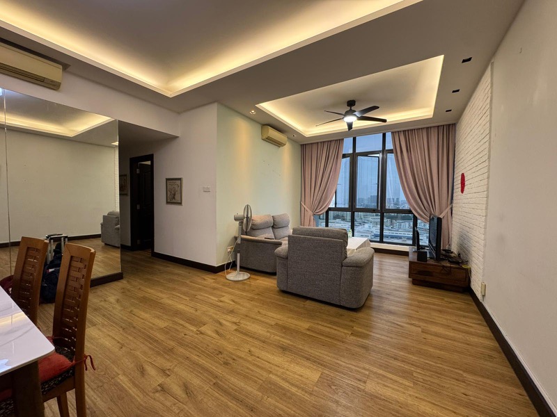 Step into a sanctuary of light and space in this beautifully maintained 3-bedroom unit at Regent Heights. The abundant natural light floods through floor-to-ceiling windows, illuminating the elegant living and dining areas adorned with light wood-look flooring and cove lighting. A large mirrored wall enhances the airy ambiance, creating a perfect backdrop for both relaxation and entertaining.