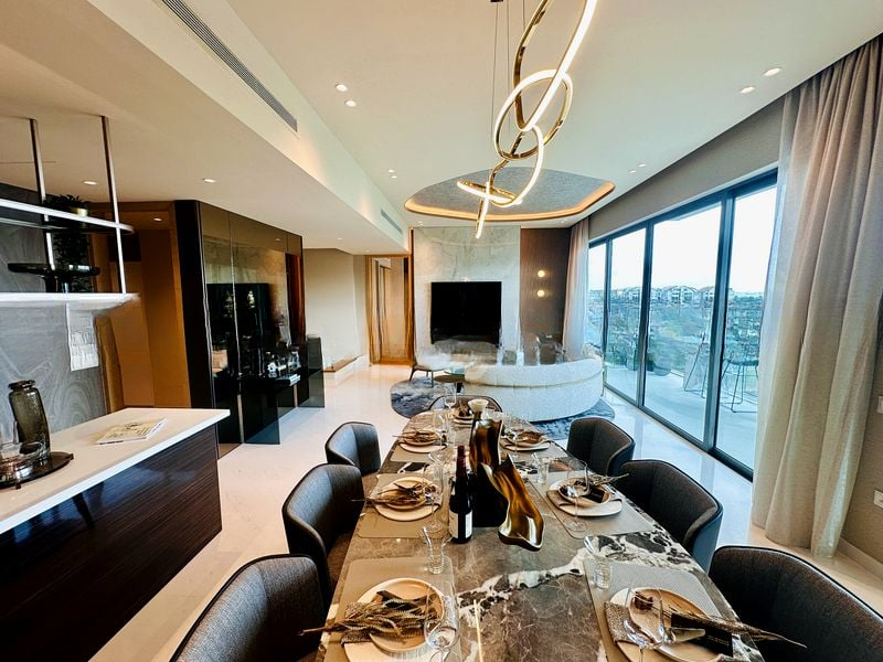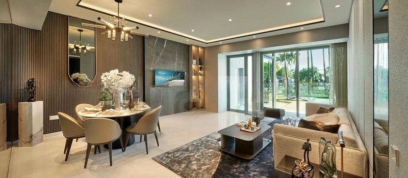 Step into a world of modern luxury as you enter this exquisite unit at The Residences at W Singapore Sentosa Cove. Bathed in abundant natural light, the open-concept living area showcases elegant marble flooring, a designer chandelier, and a striking stone-textured feature wall, creating an inviting ambiance that feels both sophisticated and serene. The seamless flow from the living room to the balcony offers breathtaking views of lush greenery, enhancing your everyday living experience.