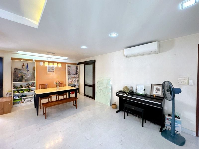 Step into this beautifully maintained 5-room flat and feel the immediate sense of space and light. The bright and airy ambiance is enhanced by abundant natural light pouring in through large windows, illuminating the elegant marble flooring that flows seamlessly throughout the unit. As a point block end unit, it offers added privacy and tranquility, making it a perfect retreat from the bustling city.