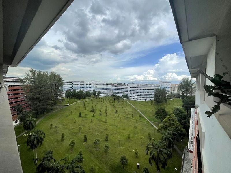 Step into this well-maintained HDB flat and be greeted by an abundance of natural light that fills the spacious living areas. The distinctive maroon and white striped facade adds character, while the covered walkway with terracotta roof tiles invites you to explore further. Enjoy the refreshing views of greenery and the surrounding neighborhood, creating a bright and airy ambiance that makes you feel right at home.