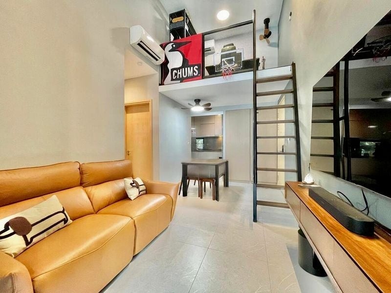 This well-maintained 2-bedroom, 2-bathroom unit boasts a thoughtful layout, featuring a spacious living area that seamlessly connects to the loft mezzanine, perfect for a home office or additional storage. The modern kitchen is equipped with integrated appliances, including an induction hob and oven, while the en-suite bathrooms offer both style and convenience. Each bedroom is designed with comfort in mind, complete with built-in wardrobes and air conditioning.