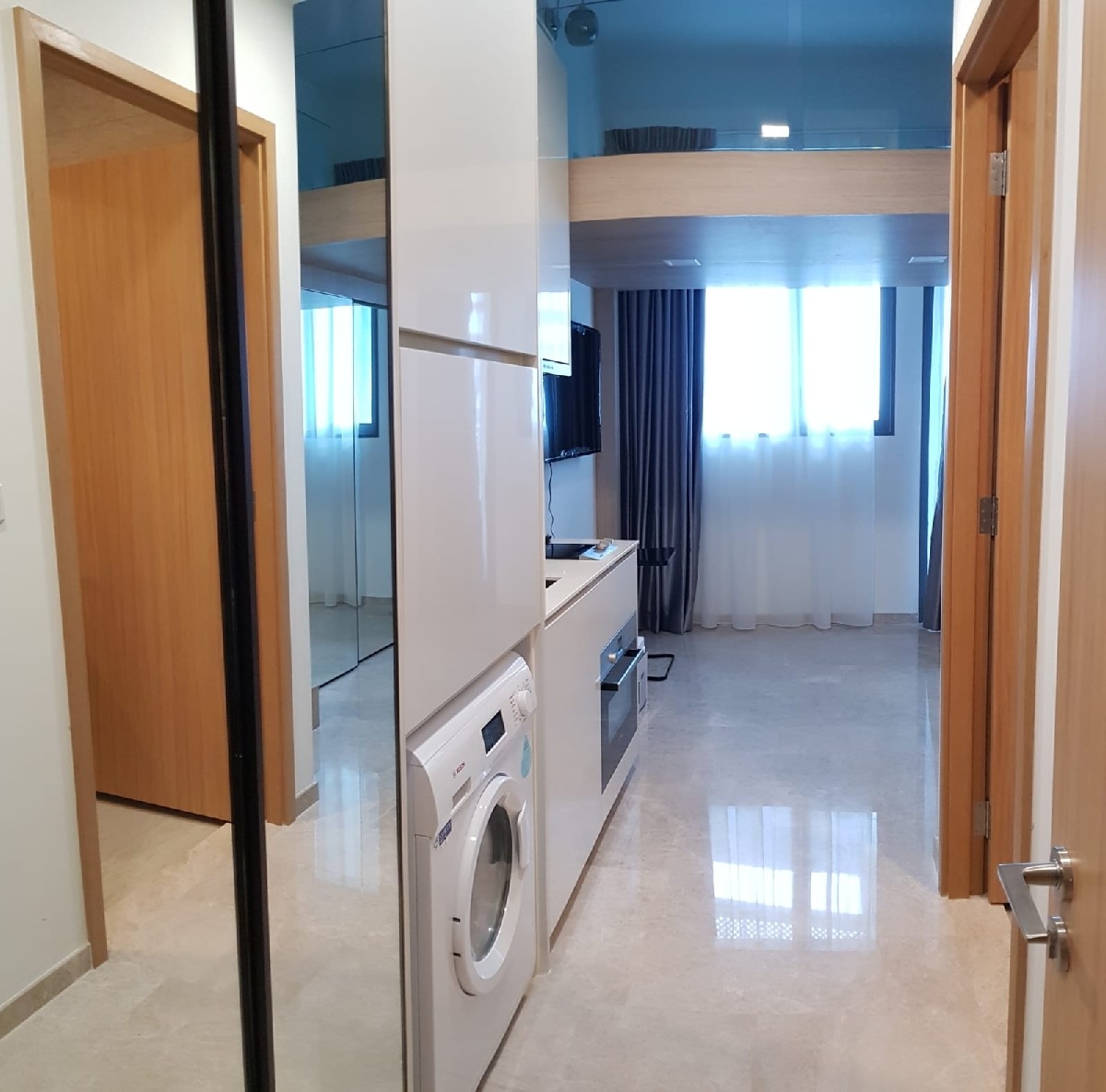 Step into a world of modern elegance as you enter this well-maintained 2-bedroom unit at City Gate. Bathed in abundant natural light, the space features marble-look floor tiles that enhance the minimalist ambiance. Enjoy panoramic views of the city skyline and water body from the balcony, where the glass railing and perforated metal privacy screen create a serene escape.