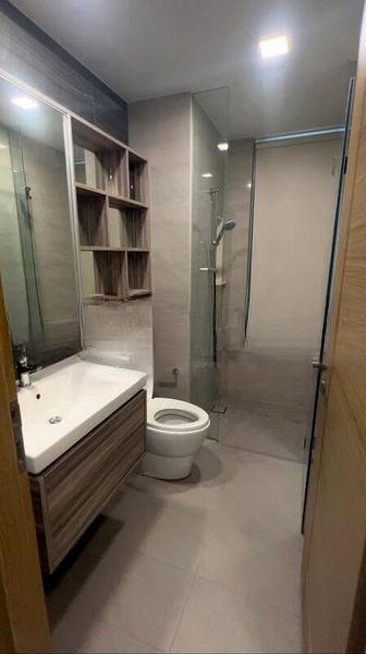 This unit boasts standout features including a well-equipped kitchen with integrated appliances, an L-shaped bathroom vanity, and built-in storage drawers under the bed for maximum efficiency. The master bedroom is a serene retreat with ample natural light and a spacious layout, complemented by a common bedroom ideal for guests or a study area. The bathrooms are designed with modern finishes, including a walk-in shower and mirrored cabinets, ensuring both style and functionality.