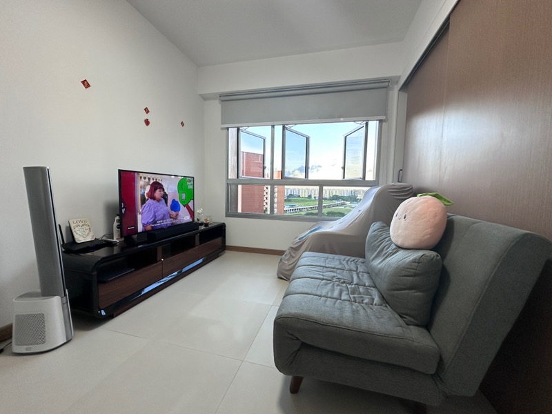Step into a world of brightness and elegance in this meticulously maintained 3-bedroom HDB flat. The abundant natural light floods through large windows, accentuating the modern finishes and airy ambiance. You’ll immediately notice the glass-walled study room, creating a seamless visual connection while providing a dedicated workspace. The open-concept living and dining area, adorned with bright tiled flooring and a stylish wooden TV console, invites you to relax and entertain in comfort.