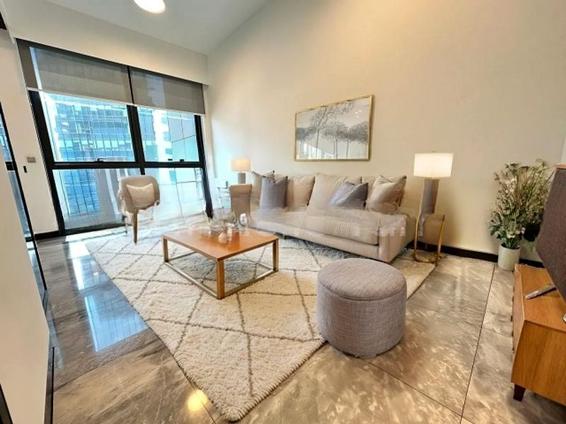 Step into a world of modern luxury as you enter this exquisite duplex unit at Midtown Bay. Bathed in abundant natural light, the open-concept living and dining area boasts floor-to-ceiling windows that frame breathtaking city skyline views. The designer finishes, including marble feature walls and large format tiles, create an ambiance of sophistication and elegance.