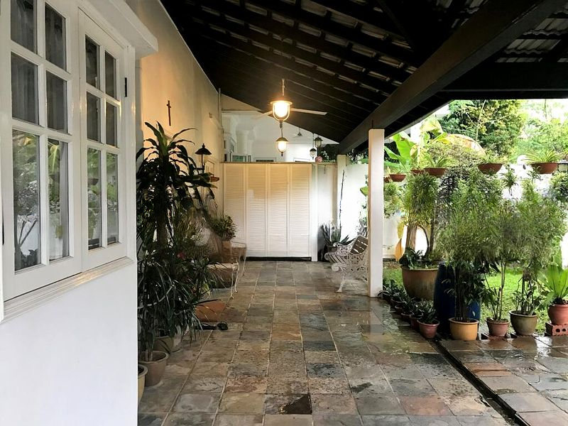 Step into a warm and inviting ambiance as you enter this well-maintained landed property at Kew Vale. The large living area, adorned with tiled flooring and a plush area rug, invites you to relax, while the expansive windows drench the space in natural light, offering serene views of lush greenery and the neighborhood. The covered patio, with its natural stone tiles and ceiling fans, beckons for al fresco gatherings amidst an extensive collection of potted plants.