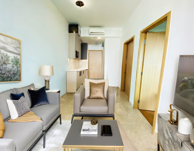 Step into a modern minimalist haven at City Gate, where polished marble-look floor tiles and abundant natural light create an inviting ambiance. The open-concept living room seamlessly connects to a high-floor balcony, offering unobstructed views of the city skyline and architectural landmarks that will captivate your senses.
