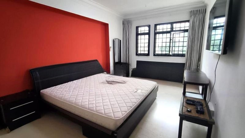 Step into this inviting 3-bedroom HDB unit, where a warm ambiance greets you with its cozy, functional layout and striking red feature walls. Natural light filters through large windows, illuminating the marble-look flooring in the open-concept living and dining area, creating a perfect space for relaxation and entertaining.