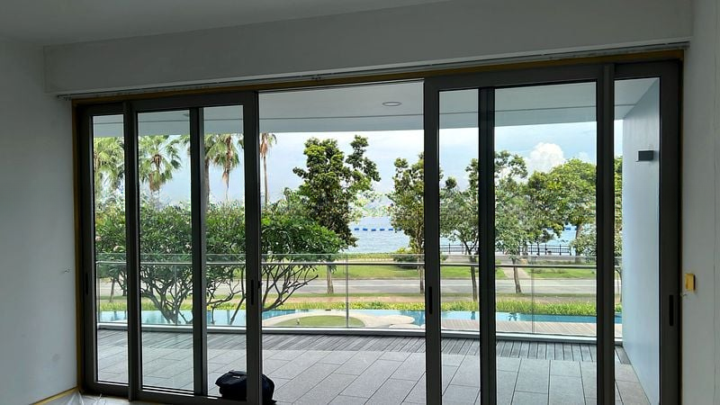 Step into a world of elegance and tranquility at The Coast at Sentosa Cove, where abundant natural light floods the spacious living area through floor-to-ceiling sliding glass doors. The bright and airy ambiance is complemented by stunning views of the sea, marina, and lush greenery, creating a serene backdrop for your daily life. Imagine unwinding on your large outdoor balcony, complete with a stylish dining set, wooden bar counter, and a cozy hanging egg chair, all framed by sleek glass railings.