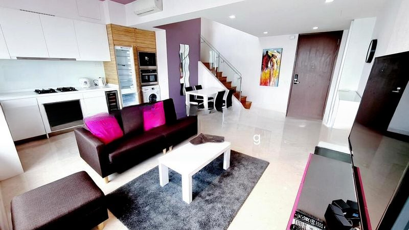This well-maintained 3-bedroom, 4-bathroom unit boasts standout features including a loft bed with an integrated desk, textured feature walls, and wooden flooring throughout. The contemporary kitchen and bathrooms are equipped with high-end finishes, including a glass shower partition and a modern vanity with a vessel sink. Enjoy the infinity pool, artificial grass tennis court, and outdoor dining pavilion that enhance your lifestyle within this exclusive development.