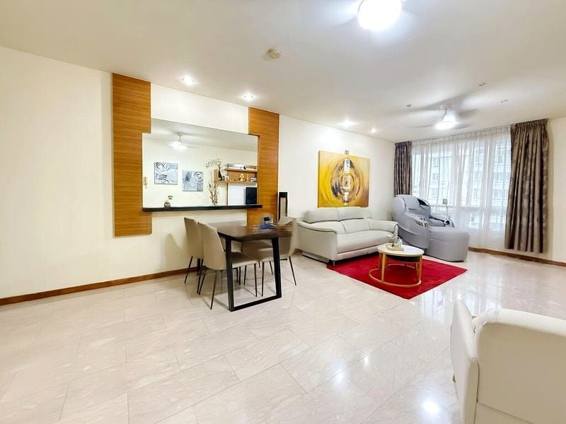 Step into a warm and inviting atmosphere at this beautifully maintained 4-bedroom unit in Yishun Sapphire. The moment you enter, you are greeted by the elegant marble flooring that flows seamlessly through the open-concept living and dining areas. Large sliding glass doors invite natural light and offer serene views of lush greenery, creating a tranquil backdrop for relaxation.