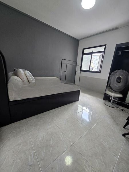 This well-maintained unit features three distinct bedrooms, each with its own unique charm. The master bedroom boasts a designer black chandelier and a large wardrobe with geometric patterned glass doors, while the other bedrooms offer a cozy ambiance with stylish decor and ample storage. The updated bathroom showcases textured grey wall tiles and an instant water heater, ensuring comfort and convenience.