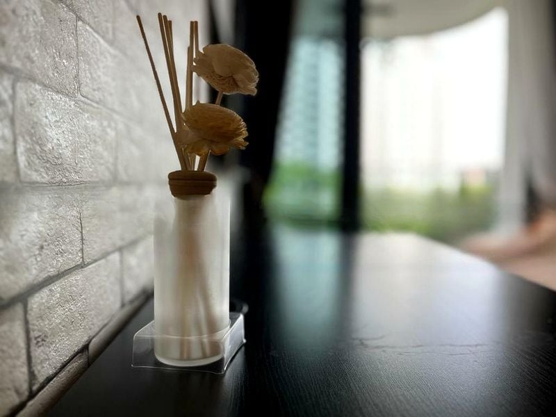 This well-maintained 2-bedroom, 2-bathroom unit features standout elements such as an L-shaped kitchen with two-tone cabinetry, a built-in oven, and elegant marble-patterned bathroom tiles. The spacious living room is perfect for relaxation, while the bedrooms boast built-in sliding wardrobes and large windows that enhance the sense of space and light. Every detail has been thoughtfully designed to provide both comfort and style.