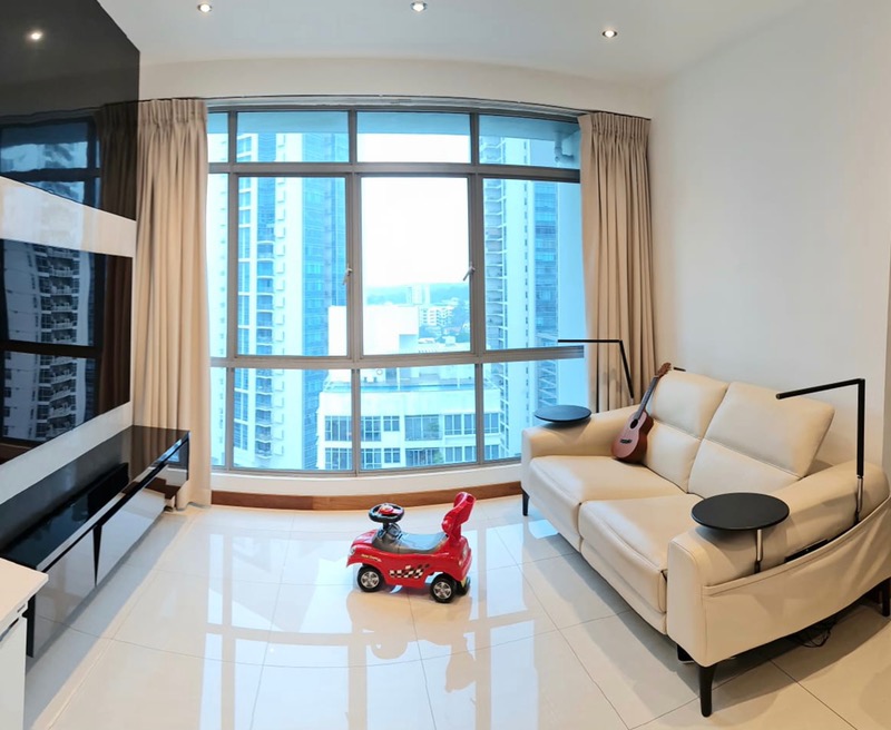 Step into a world of elegance as you enter this beautifully renovated unit at Newton 21. The abundant natural light floods through the floor-to-ceiling windows, offering breathtaking views of the city skyline, lush greenery, and the inviting swimming pool. The modern minimalist ambiance is accentuated by polished porcelain tile flooring and recessed ceiling spotlights, creating a bright and airy atmosphere that feels both luxurious and welcoming.