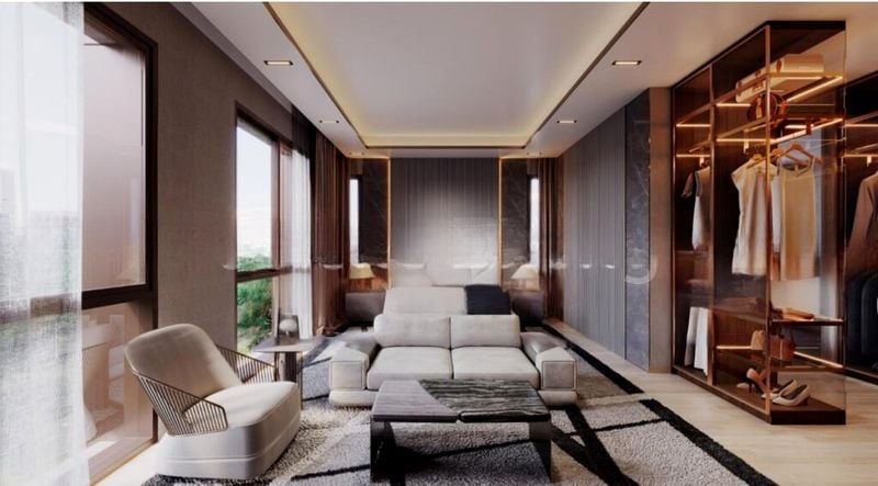 Step into a world of modern luxury as you enter this brand-new semi-detached home, where abundant natural light floods the space through floor-to-ceiling glass sliding doors. The elegant finishes, including a striking black marble island kitchen and a freestanding oval bathtub, create an ambiance that is both inviting and sophisticated, while the lush greenery views from every angle enhance the serene atmosphere.