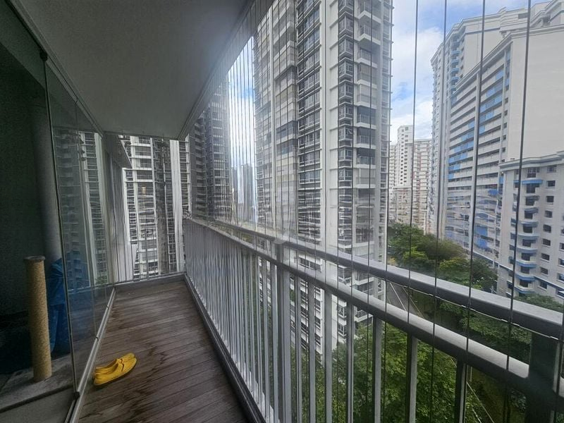 This well-maintained 3-bedroom unit boasts a thoughtful layout with standout features including a spacious living room with balcony access, a dining area with a glass-top table, and a modern kitchen equipped with black stone countertops and integrated appliances. The master bedroom offers a floor-to-ceiling built-in wardrobe and direct balcony access, while the bathroom impresses with a stylish rain shower and contemporary finishes.