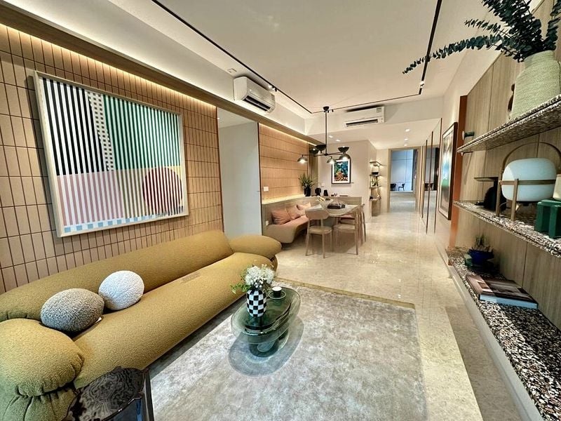 Step into a world of modern luxury as you enter this brand-new condominium at Pinetree Hill. The abundant natural light floods through the floor-to-ceiling glass windows, offering breathtaking views of lush greenery and the city skyline. The ambiance is reminiscent of a high-end resort, with a serene atmosphere that invites relaxation and comfort.