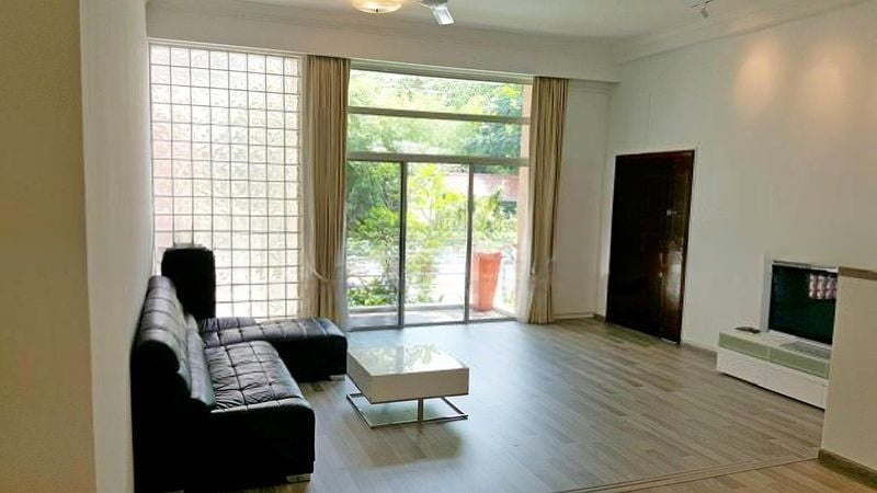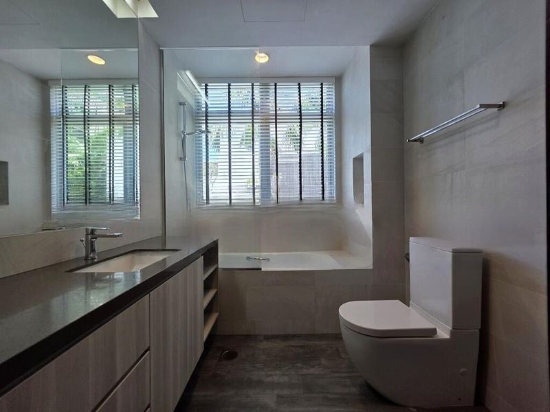 Step into a sanctuary of light and space at NASSIMVILLE, where abundant natural light floods through large windows, creating a bright and airy ambiance. The polished wood flooring in the bedrooms enhances the warmth of the space, while the lush greenery views invite the serenity of nature indoors.
