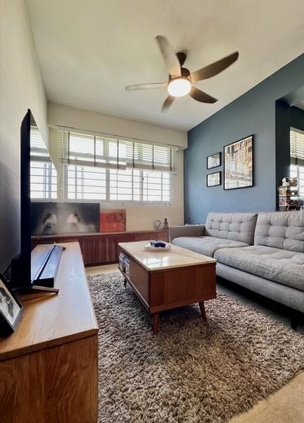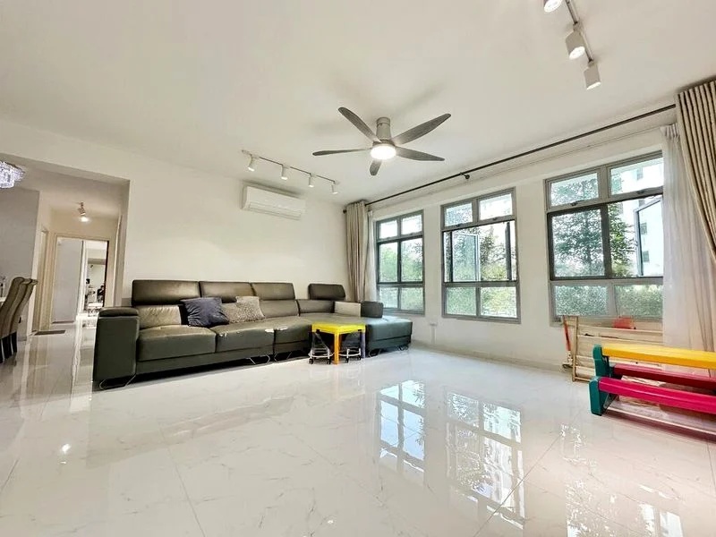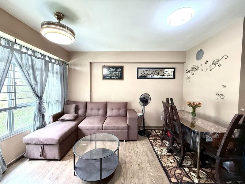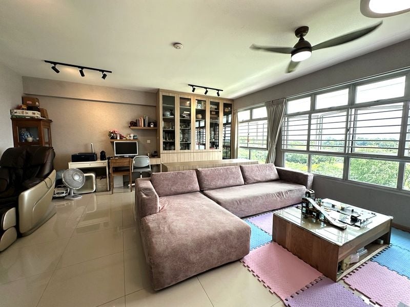 Step into this beautifully renovated HDB flat and be greeted by an abundance of natural light that fills the airy living space. The large windows frame stunning unblocked views of lush greenery, creating a serene ambiance that invites relaxation. The modern finishes, including track lighting and built-in wooden cabinets, enhance the contemporary feel of the home.
