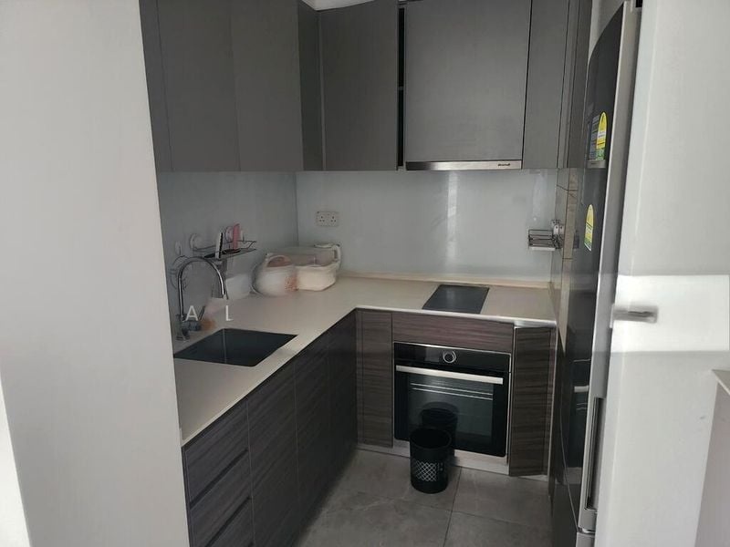 This well-maintained 1-bedroom unit boasts a modern minimalist design, featuring a linear kitchen layout equipped with built-in appliances, including an integrated refrigerator and induction hob. The living room is complemented by a ceiling fan and wall-mounted air conditioning, ensuring comfort throughout the year. Ample built-in storage cabinets provide practicality without compromising style, making this space perfect for both relaxation and entertaining.