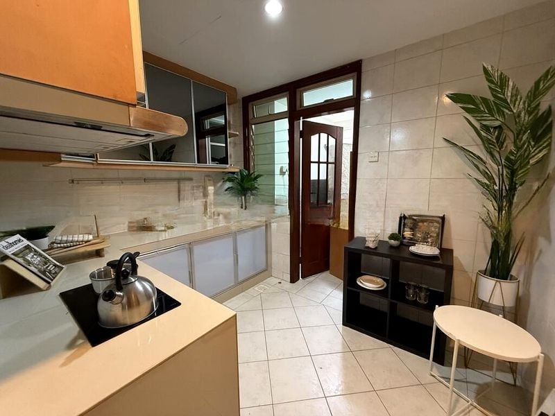 This well-maintained 1-bedroom unit features a thoughtful layout with wood-look laminate flooring throughout. The living area boasts a stylish daybed with storage drawers, complemented by a large wall mirror that enhances the sense of space. The compact dining area is perfect for intimate meals, while the bathroom indulges with a luxurious bathtub and a marble vanity top, ensuring comfort and style.