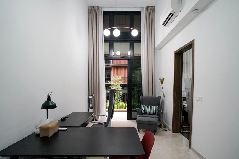 Step into a sanctuary of light and space at Daintree Residence, where abundant natural light floods the open-concept living area, accentuated by high ceilings and floor-to-ceiling windows. The ambiance is bright and airy, inviting you to relax on the balcony while enjoying serene views of lush greenery.